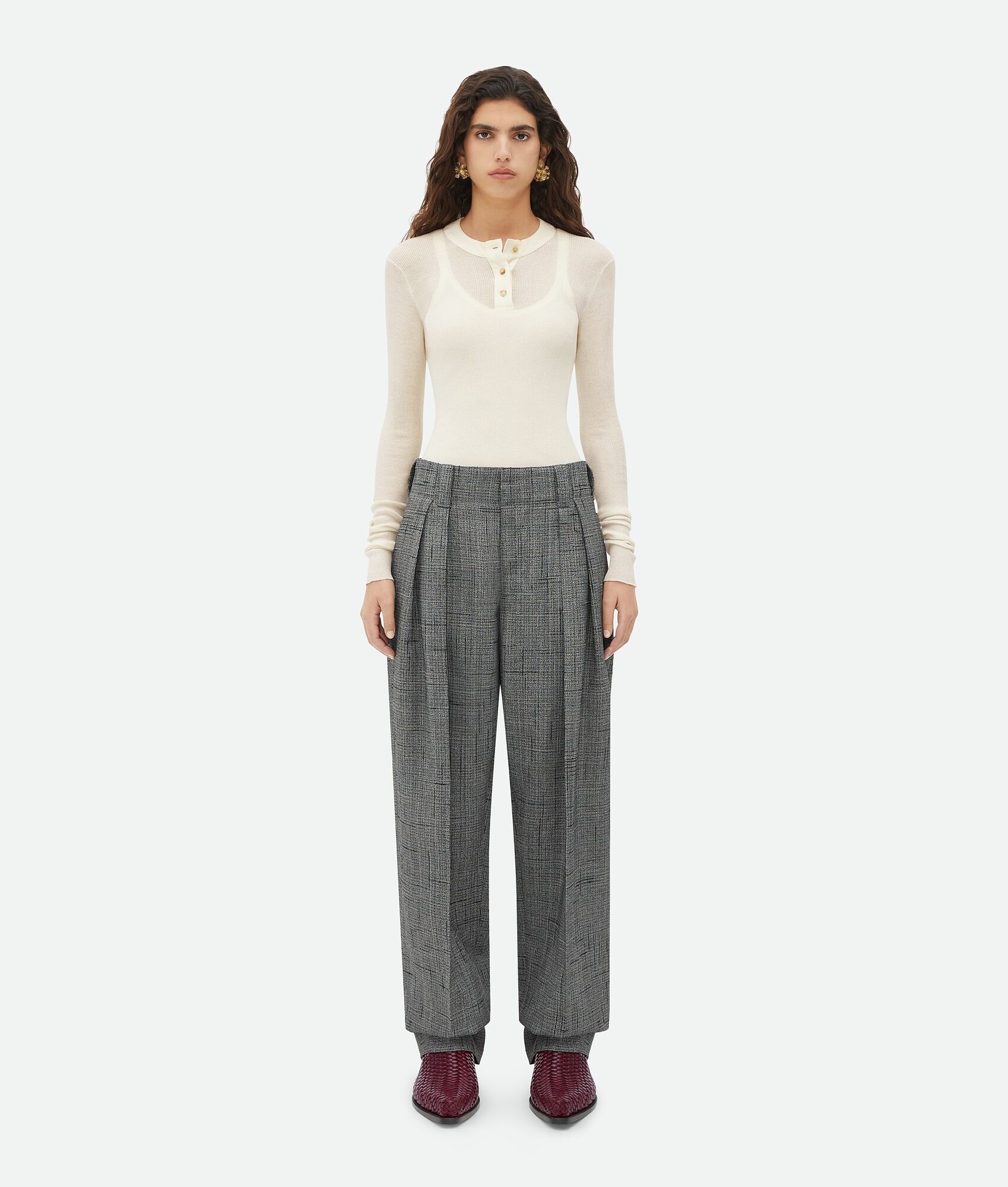 • Viscose and silk textured pants • Zipper, button and hook closure • Wide leg Material: 40% Viscose, 35% Silk, 25% Polyester • Color: Camping/Grey Melange Made in: Italy