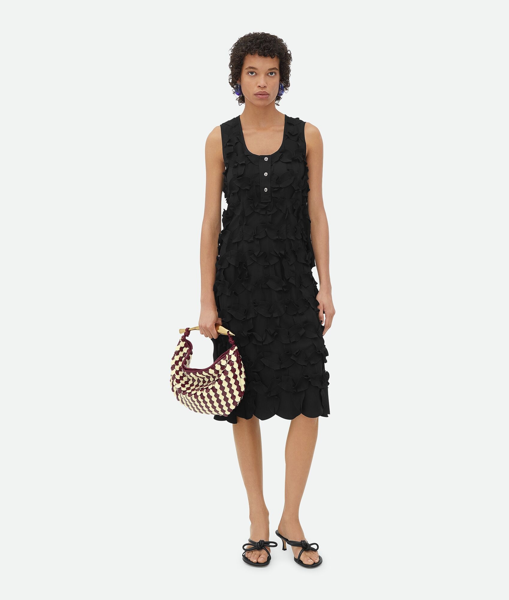 Midi dress realised in fluid viscose using a special technique to create a 3D effect. Product Details - Fluid viscose midi dress - Circle patch technique - Zip closure - Unlined - Material: 100% Viscose - Color: Black - Made in: Italy - Product code: 793927V4HR01000 Size & Fit - Model is 179 cm | 5'10" and is wearing a Bottega Veneta size 38