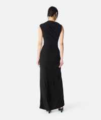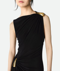 Dress in matte crepe viscose jersey with signature metal drop details. Product Details - Matte crepe viscose jersey dress - Metal drop details - Zipper closure - Slim fit - Material: 100% Viscose - Color: Black - Made in: Italy - Product code: 831590V4YX01000 Size & Fit - Model is 176 cm | 5'9" and is wearing a Bottega Veneta size 38