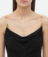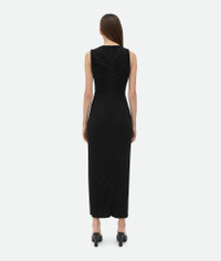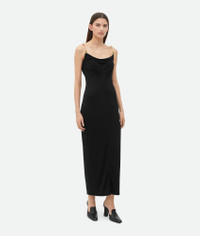 Long dress in viscose jersey. Product Details - Viscose jersey long dress - Flower detail at shoulder - Zip closure - Unlined - Slim fit - Material: 100% Viscose - Color: Black - Made in: Italy - Product code: 789955V4FB01000 Size & Fit - Model is 177 cm | 5'9" and is wearing a Bottega Veneta size 38
