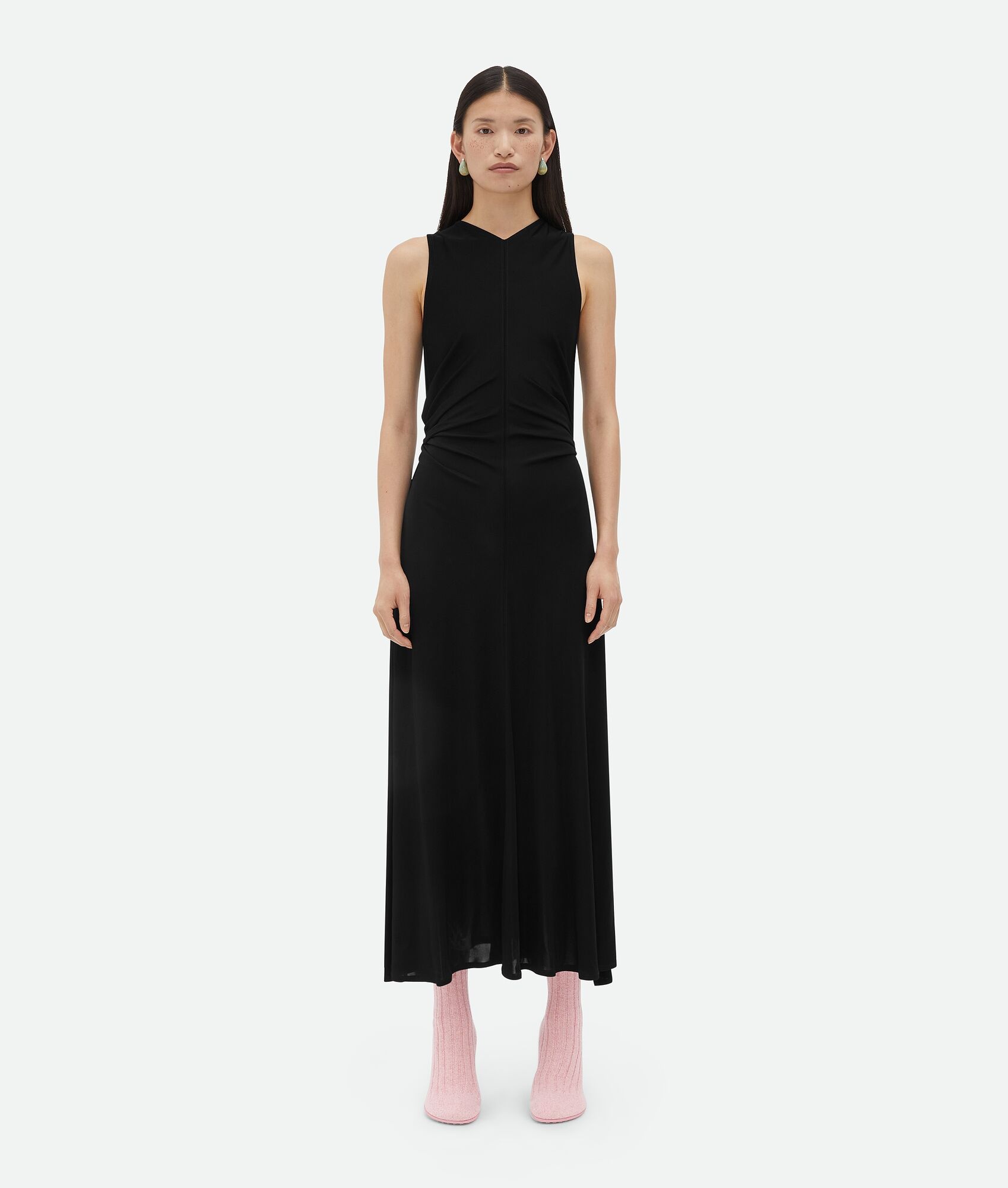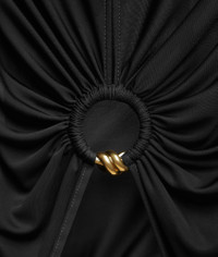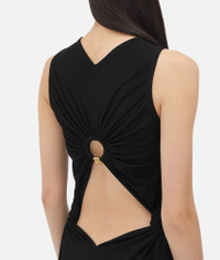 Long dress with signature knot detail and metal ring on the back. Realised in liquid Product Details - Viscose long dress - Knot detail with metal ring at back - Unlined - Slim fit - Material: 100% Viscose - Color: Black - Made in: Italy - Product code: 772479VKUQ01000 Size & Fit - Model is 180 cm | 5'11" and is wearing a Bottega Veneta size 38