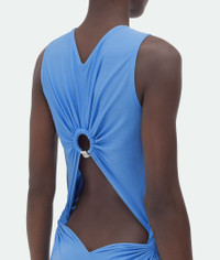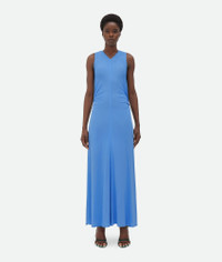Long dress with signature knot detail and metal ring on the back. Realised in liquid Product Details - Viscose long dress - Knot detail with metal ring at back - Unlined - Slim fit - Material: 100% Viscose - Color: Admiral - Made in: Italy - Product code: 772479VKUQ04225 Size & Fit - Model is 179 cm | 5'10" and is wearing a Bottega Veneta size 38