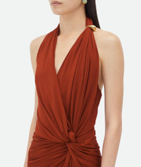 Long dress with signature drop detail and metal ring on the shoulder. Realised in Product details • Viscose long dress • Metal ring detail on the shoulder strap • Drape detail at side • Unlined • Regular fit Material: 100% Viscose • Color: Pudding Made in: Italy Size & fit • Model is 180 cm | 5'11" and is wearing a Bottega Veneta size 38