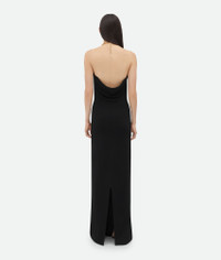 Long dress with gold-finished chain strap detail realised in fluid matte viscose Product details • Double viscose knitted long dress with chain • Chain closure • Unlined • Regular fit Material: 85% Viscose, 11% Polyamide, 4% Elastane • Color: Black Made in: Italy Size & fit • Model is 180 cm | 5'11" and is wearing a Bottega Veneta size S