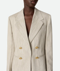 Jacket in multicolour viscose and silk with decorative knot button detailing. Product Details - Multicolor viscose and silk jacket - Metal knot buttons - No closure - Fully lined - Regular fit - Material: 56% Viscose, 36% polyester, 8% silk - Color: Gray Putty - Made in: Italy - Product code: 815668V5QR02674 Size & Fit - Model is 178 cm | 5'10" and is wearing a Bottega Veneta size 38