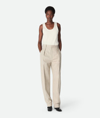 Trousers with tapered leg in multicolour viscose and silk. Product Details - Multicolor viscose and silk pants - Tapered leg - Zip, hook and button closure - Material: 56% Viscose, 36% polyester, 8% silk - Color: Gray Putty - Made in: Italy - Product code: 830002V5QR02674 Size & Fit - Model is 179 cm | 5'10" and is wearing a Bottega Veneta size 38