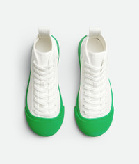 Canvas high-top lace-up sneakers. Product Details - Canvas high-top lace-up sneaker - Rubber wax stamp effect - Material: Cotton - Lining: Cotton - Color: Optic White/Parakeet - Rubber outsole - Flatform: 3.5 cm | 1.4" - Made in: Italy - Product code: 755654V2R109185