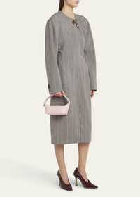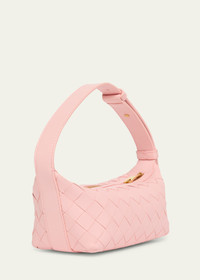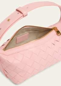 Bottega Veneta "Wallace Town" leather pouch shoulder bag with signature intrecciato design Adjustable shoulder strap Zip top closure Interior, one card slot Approx. 3.9"H x 6.2"W x 2.7"D Made in Italy Online Inquiries: BGS21_V6GUW| Store Inquiries: #4987027