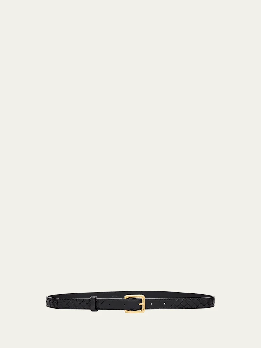 Watch-Buckle Intrecciato Leather Belt