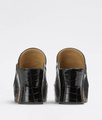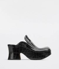 • Embossed leather clogs Material: 100% Calfskin • Lining: Lambskin • Color: Black • Leather outsole • Heel: 8.5 cm | 3.3" • Platform: 4.5 cm | 1.8" Made in: italy