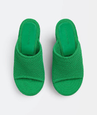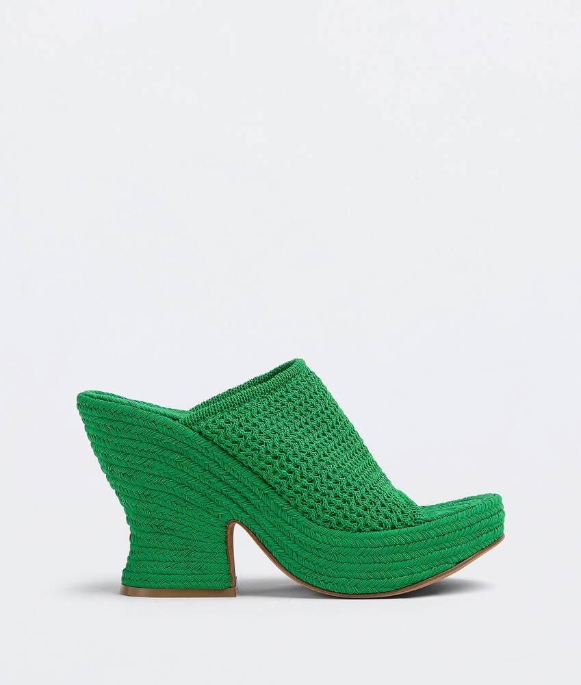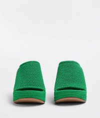 • Smooth knit mules Material: 65% Cotton, 35% Nylon • Lining: Lambskin • Color: Grass • Leather outsole • Heel: 11.5 cm • Platform: 1.6 cm Made in: italy