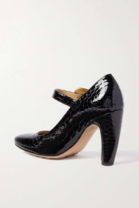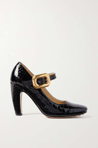 EDITORS'NOTES Bottega Veneta's 'Wedge' pumps are made from croc-effect leather with a glossy patent finish. A modern update to the classic Mary Jane style, they have a strap at the arch that fastens with a signature gold-tone buckle and they're set on a curved block heel. Style them with everything from sharp tailoring to midi dresses. SIZE & FIT - Fits true to size, take your normal size - Italian sizing DETAILS & CARE - Heel measures approximately 90mm/ 3.5 inches - Black leather (Lamb) - Buckle-fastening ankle strap