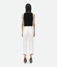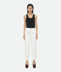 Denim with signature curved shape in a soft white wash. Product details • White soft denim trousers • Curved shape • Button closure • Straight leg Material: 100% Cotton • Color: White Made in: Italy Size & fit • Model is 180 cm | 5'11" and is wearing a Bottega Veneta size 38