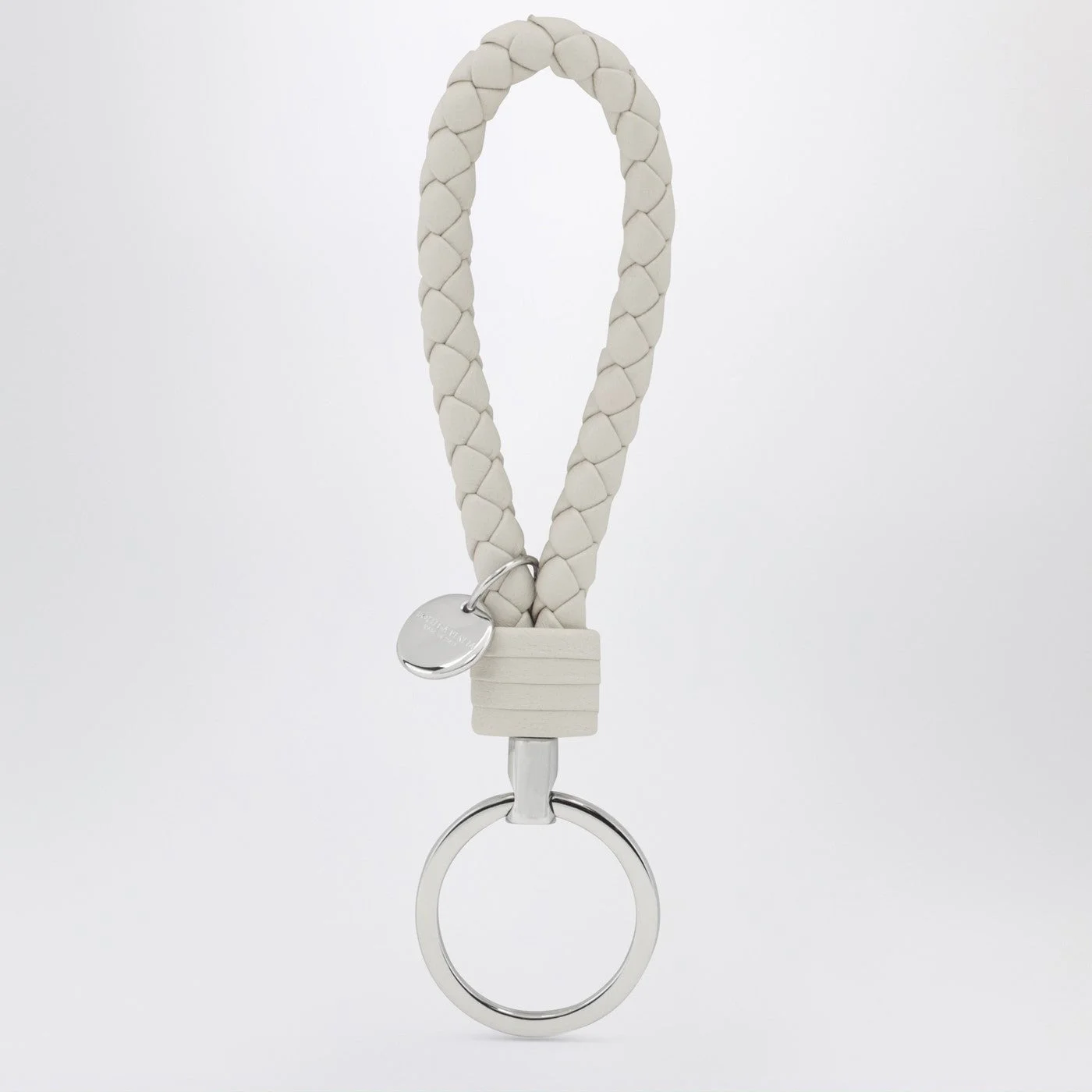 Bottega Veneta white nappa leather key ring with Intrecciato weave metal ring and logo tag with silver-tone finish.