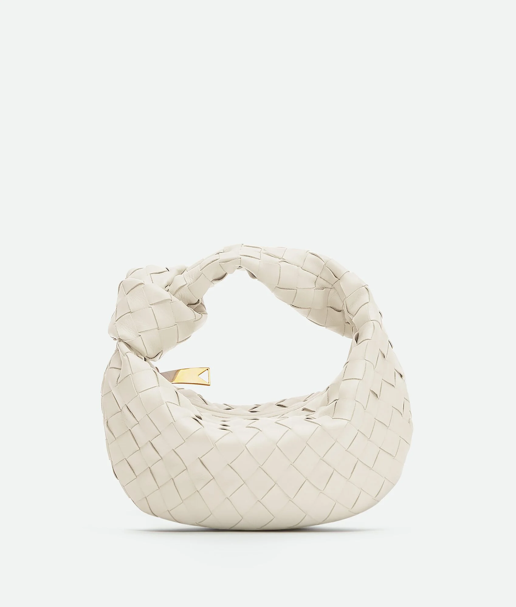 • Mini Intrecciato leather top handle bag • Single compartment • Zipper closure Material: 100% Lambskin • Lining: Calfskin • Color: Chalk • Hardware: Gold finish • Height: 23 cm | 9.1" • Width: 28 cm | 11" • Depth: 8 cm | 3.15" • Handle drop: 10 cm | 3.9" Made in: Italy