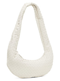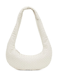 Intrecciato-woven grained lambskin shoulder bag in white. · Fixed carry handle · Zip closure · Zip pocket at interior · Taffeta lining · H7 x W16.5 x D2 in Supplier color: White/Silver Lambskin. Made in Italy 232798F048014