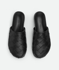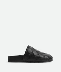 Open back clog in padded Intrecciato leather with ergonomic leather insole. Product Details - Padded Intrecciato leather mule clog - Ergonomic leather insole - Material: Calfskin - Lining: Lambskin - Color: Black - Rubber outsole - Made in: Italy - Product code: 796701V3HB01000