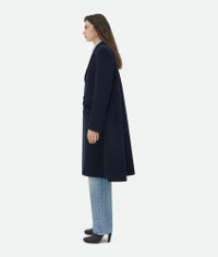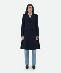 Wool and cashmere cape coat. Product details • Wool and cashmere cape coat • Button closure • Double construction • Fully lined • Regular fit Material: 79% Wool, 21% Cashmere • Color: Navy Made in: Italy Size & fit • Model is 177 cm | 5'9" and is wearing a Bottega Veneta size 38