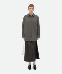 Shirt in light stretch wool tricotine. Product Details - Light stretch wool tricotine shirt - Button closure - Unlined - Oversized fit - Material: 75% wool, 22% polyamide, 3% elastane - Color: Grey Melange - Made in: Italy - Product code: 797480V4M301962 Size & Fit - Model is 180 cm | 5'11" and is wearing a Bottega Veneta size 38
