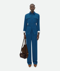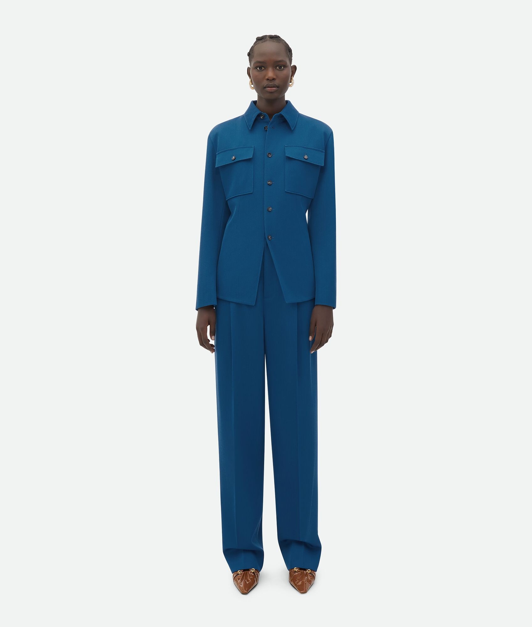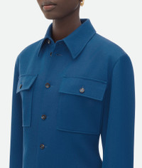 Felted wool jumper. Product details • Felted wool jumper • Metal knot button closure • Regular fit Material: 100% Virgin Wool • Color: Pacific Made in: Italy Size & fit • Model is 180 cm | 5'11" and is wearing a Bottega Veneta size 38