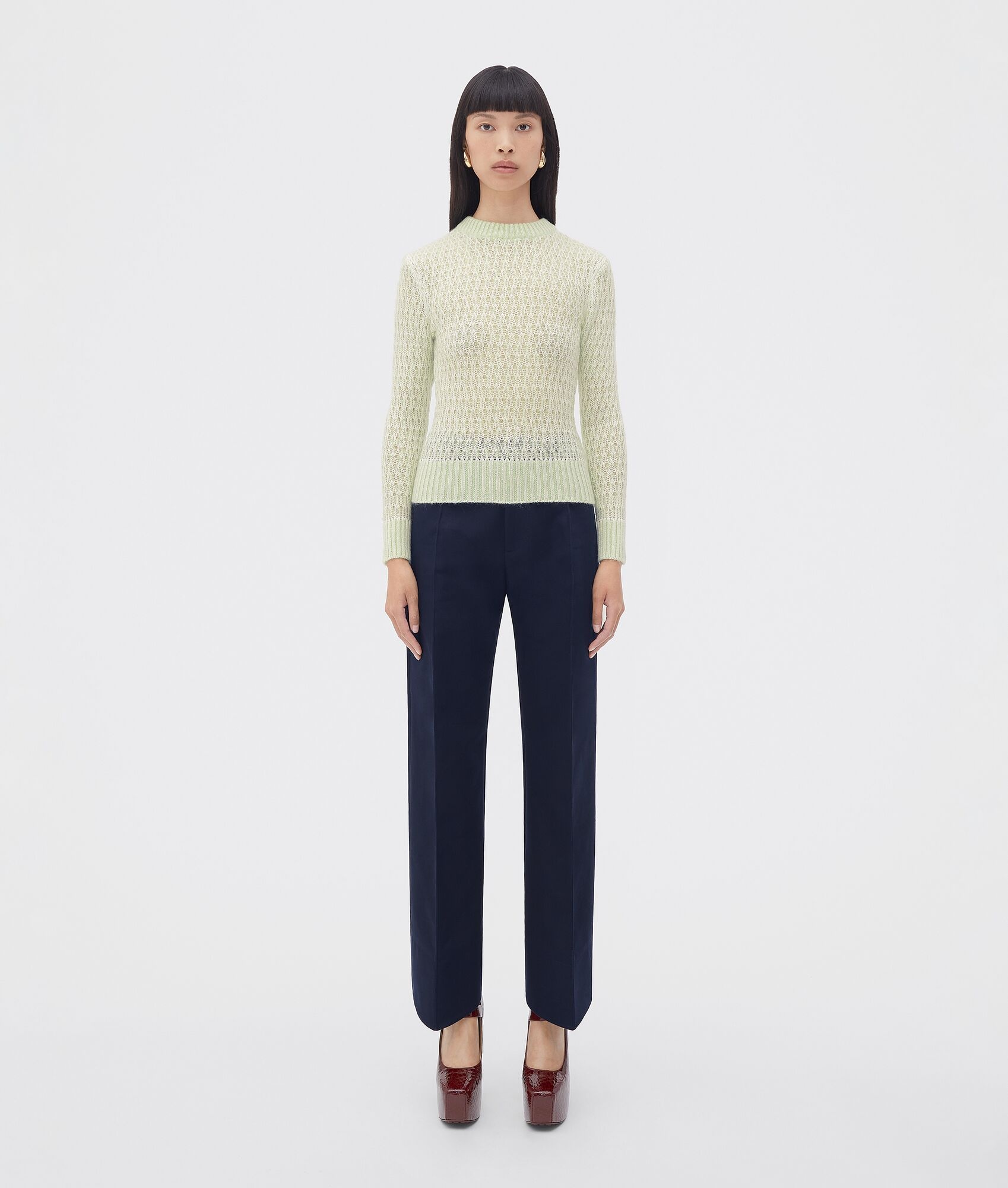 • Wool and mohair lace effect jumper • Slim fit Material: 55% Wool, 32% Mohair, 13% Polyamide • Color: Pistachio/Bone Made in: Italy