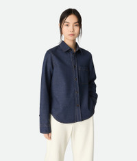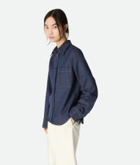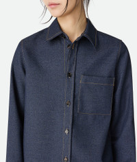 Shirt in melange wool drill featuring an indigo denim effect. Product Details - Melange wool drill shirt - Indigo denim effect - Button closure - Regular fit - Color: Dark Indigo - Made in: Italy - Product code: 832289V5VQ04023 Size & Fit - Model is 176 cm | 5'9" and is wearing a Bottega Veneta size 38