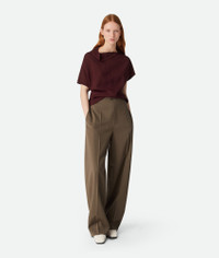 Trousers with straight leg in melange wool stretch tricotine. Product Details - Melange wool stretch tricotine trousers - Straight leg - Zip, hook and button closure - Material: 88% Wool, 10% polyamide, 2% elastane - Color: Ebony/Light Jute Melange - Made in: Italy - Product code: 820107V5CA02026 Size & Fit - Model is 177 cm | 5'9" and is wearing a Bottega Veneta size 38