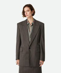 Jacket in subtle stripe melange wool. Product Details - Melange wool subtle stripe jacket - Button closure - Fully lined - Regular fit - Material: 98% Wool, 1% cotton, 1% viscose - Color: Grey/Brown Melange - Made in: Italy - Product code: 820067V5C501152 Size & Fit - Model is 174 cm | 5'8" and is wearing a Bottega Veneta size 38