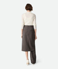 Midi skirt with trouser leg and asymmetrical silhouette in subtle stripe melange Product Details - Melange wool subtle stripe midi skirt trousers - Zip, hook and button closure - Straight leg - Material: 98% Wool, 1% cotton, 1% viscose - Color: Grey/Brown Melange - Made in: Italy - Product code: 819984V5C501152 Size & Fit - Model is 174 cm | 5'8" and is wearing a Bottega Veneta size 38