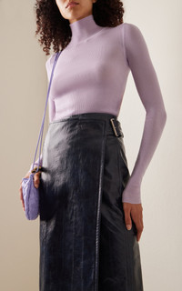 For Bottega Veneta's Fall '23 show, Matthieu Blazy delivered with a collection that ups the fashion ante while simultaneously delivering real-life wearability. This mock-neck sweater has a fitted silhouette finely knit from lightweight ribbed wool. The longer length makes it perfect for tucking into high-cut trousers and skirts. PRODUCT DETAILS - Slip on - Composition: 100% virgin wool - Designer color: Thistle - Dry clean - Made in Italy SIZE & FIT - Model is wearing a size Small - Designed for a slim fit