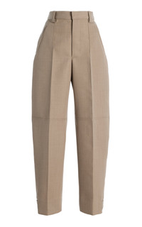 Bottega Veneta (meaning "Venetian Artisanal Workshop" in its native Italian) unites different people, ideas, and perspectives with an unwavering commitment to excellence and a unique vision of luxury. With solid foundation, each season builds off the other, delivering new iterations of coveted house signatures with contemporary, yet timeless, flare. Cut from soft wool twill, these trousers have tapered legs with pin-tucked creases and adjustable zipped cuffs. PRODUCT DETAILS - Fall '25 - Zip fastening - Composition: 100% wool - Dry clean - Made in Italy
