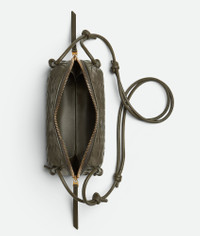 Product Details - Intrecciato nappa leather pouch - One main compartment, one interior flat pocket - Zipper closure with leather puller - Adjustable leather tubular strap with sliding knots - Lining: Calf leather - Color: Cypress - Hardware: Gold finish - Height: 11.5 cm | 4.5" - Width: 18.5 cm | 7.3" - Depth: 8.5 cm | 3.3" - Strap drop: 55 cm | 21.7" - Made in: Italy - Product code: 794258VCPP13228