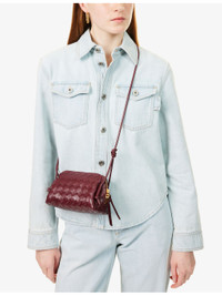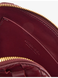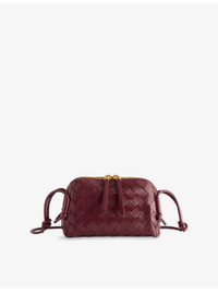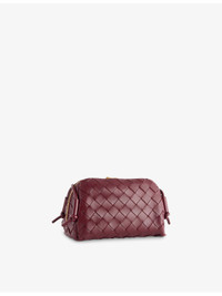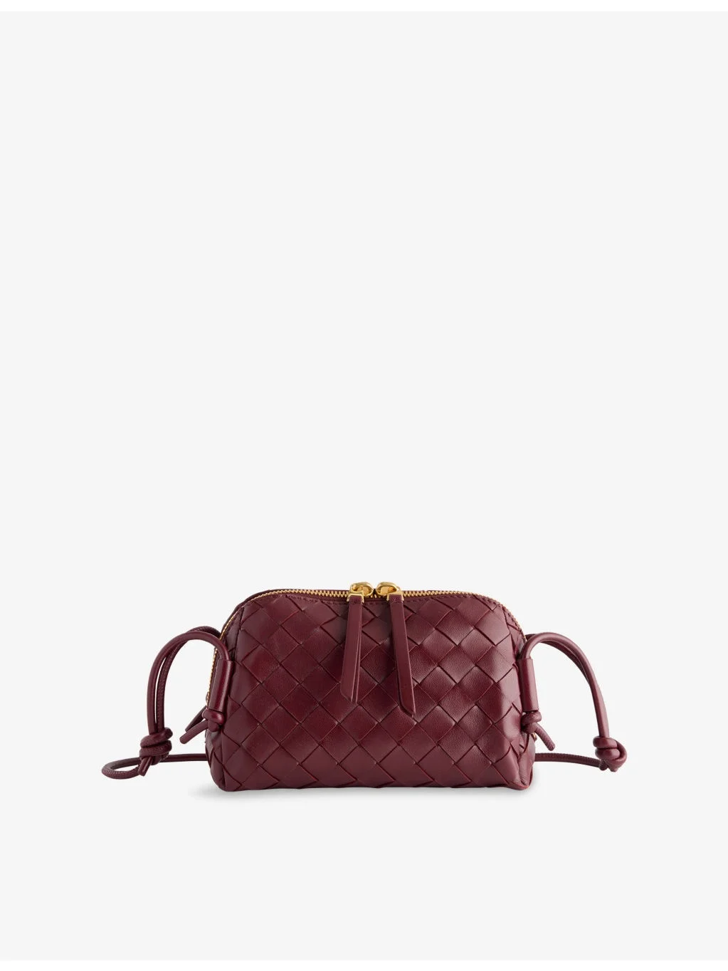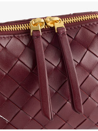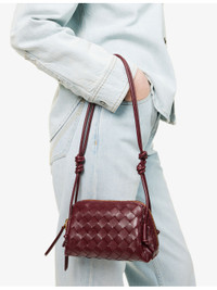 PRODUCT DETAILS - Bottega Veneta leather pouch - 100% lamb leather; lining 100% calf leather - Zip fastening - Rectangular shape, knots at shoulder strap, all-over double-faced weave, all-over smooth leather, gold-toned hardware, one main compartment, internal slip pocket and debossed branding - Height 11cm, width 17cm, depth 8.5cm, strap length 70cm, strap drop 29cm - Specialist leather clean - Made in Italy - Comes with a dust bag Ref: R04434425