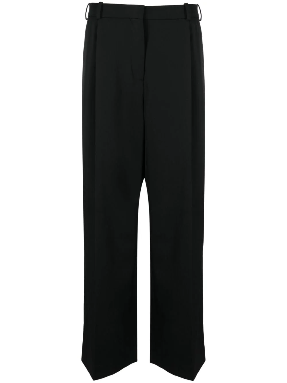 pleated wide-leg trousers Highlights - Black - Tailored design - Pleat detailing - Belt loops - Concealed front fastening - Wide leg - Two side inset pockets - Rear welt pocket - Long length Imported Composition Outer: Polyester 55%, Virgin Wool 45% Lining: Cotton 100% SIZE & FIT Model measurements Height 5 ft 11 in(1.8 m) Bust/Chest 31.49 in(80 cm) Hips 36.22 in(92 cm) Waist 25.59 in(65 cm) FittingInformation Designed with a wide-leg cut, these trousers allow for a close fit at the waist and offer a loose and roomy fit over the leg Made from a midweight non-stretch fabric This piece fits true to size – take your usual size Washing instructions Dry Clean Only