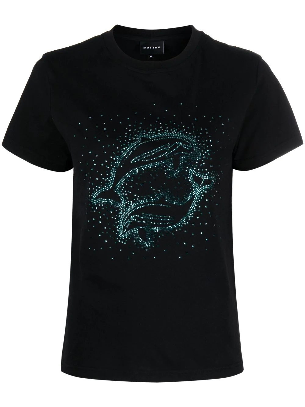 rhinestone-embellished dolphin T-shirt Botter updates the humble T-shirt with the brand's signature eye-catching motifs. This black cotton design is distinguished by the rhinestone-embellished dolphins at the front. Highlights - Black - Cotton - Rhinestone embellishment - Crew neck - Short sleeves Imported Composition Cotton 100% SIZE & FIT Model measurements Height 5 ft 10 in(1.77 m) Bust/Chest 32.67 in(83 cm) Hips 35.43 in(90 cm) Waist 23.62 in(60 cm) FittingInformation Designed for a relaxed fit, this piece allows for comfort and movement when worn Made from a midweight non-stretch fabric, this piece offers minimal elasticity when worn This piece fits true to size – take your usual size Washing instructions Hand Wash