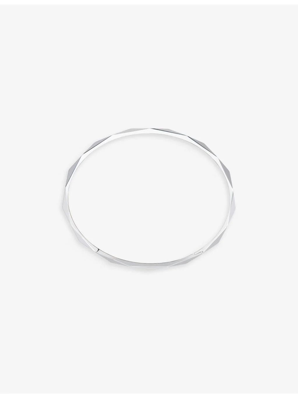 PRODUCT DETAILS - Boucheron Facette 18ct white-gold bangle bracelet - 100% 18ct white-gold - Hinge-clasp fastening - Faceted design, diamond-cut style, bangle design, brand name engraved inside - Please use a soft, dry polishing cloth - Made in Switzerland Ref: R04122005
