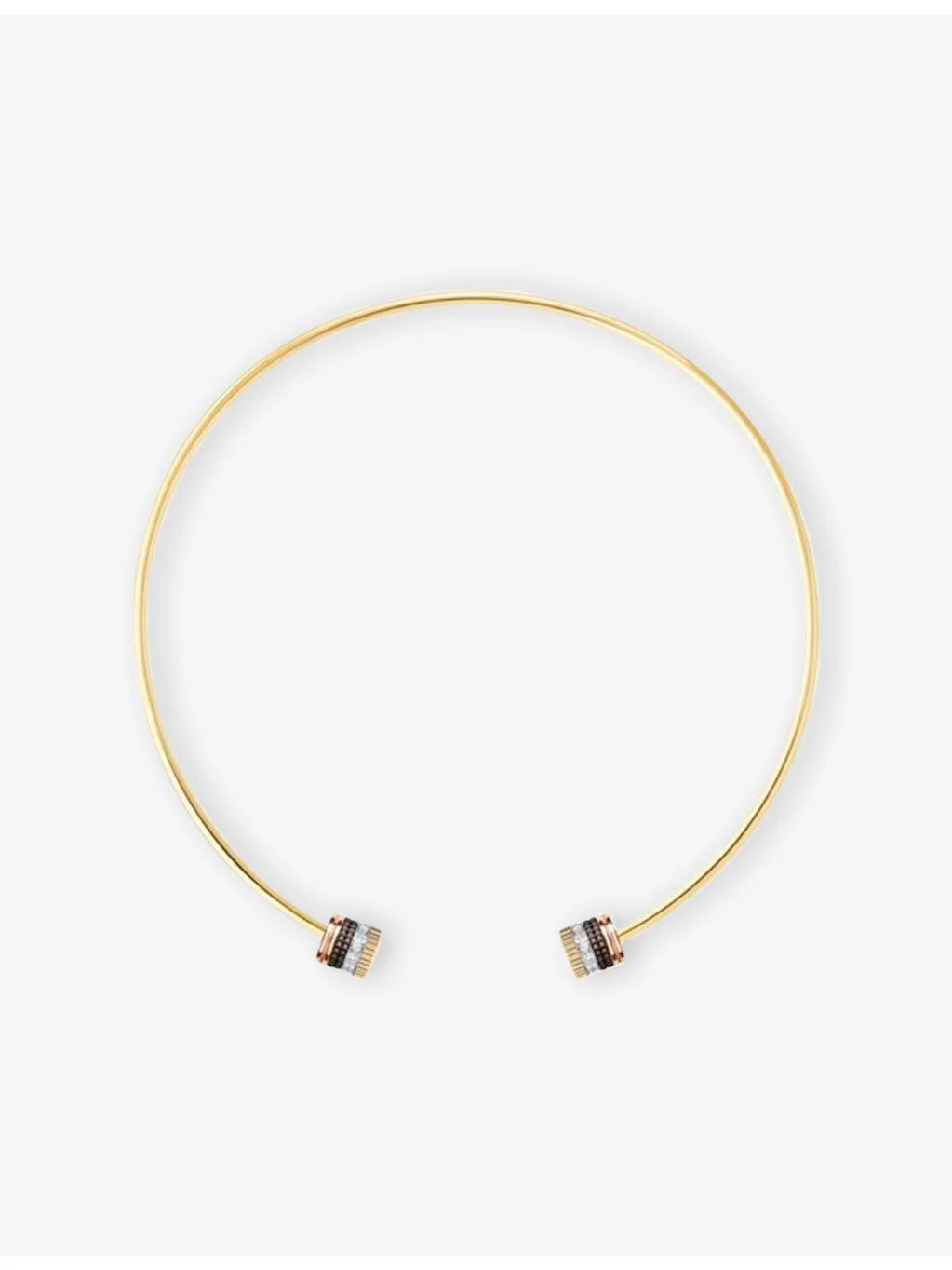 PRODUCT DETAILS - Boucheron 18ct yellow-gold, white-gold, pink-gold, PVD and 0.62ct diamond choker necklace - 100% 18ct yellow-gold, white-gold, pink-gold - Brown PVD - 26 diamonds - Slips on - Two quatre motifs at end, claspless, open design, polished finish - Carat weight: 0.62ct - Carat cut: round brilliant - Dimensions: Pendant height 10.8mm, width 10.35mm - Made in France - Please use a soft, dry polishing cloth - Presented in a Boucheron box. This product comes with a Boucheron certificate of authenticity Ref: R04477118