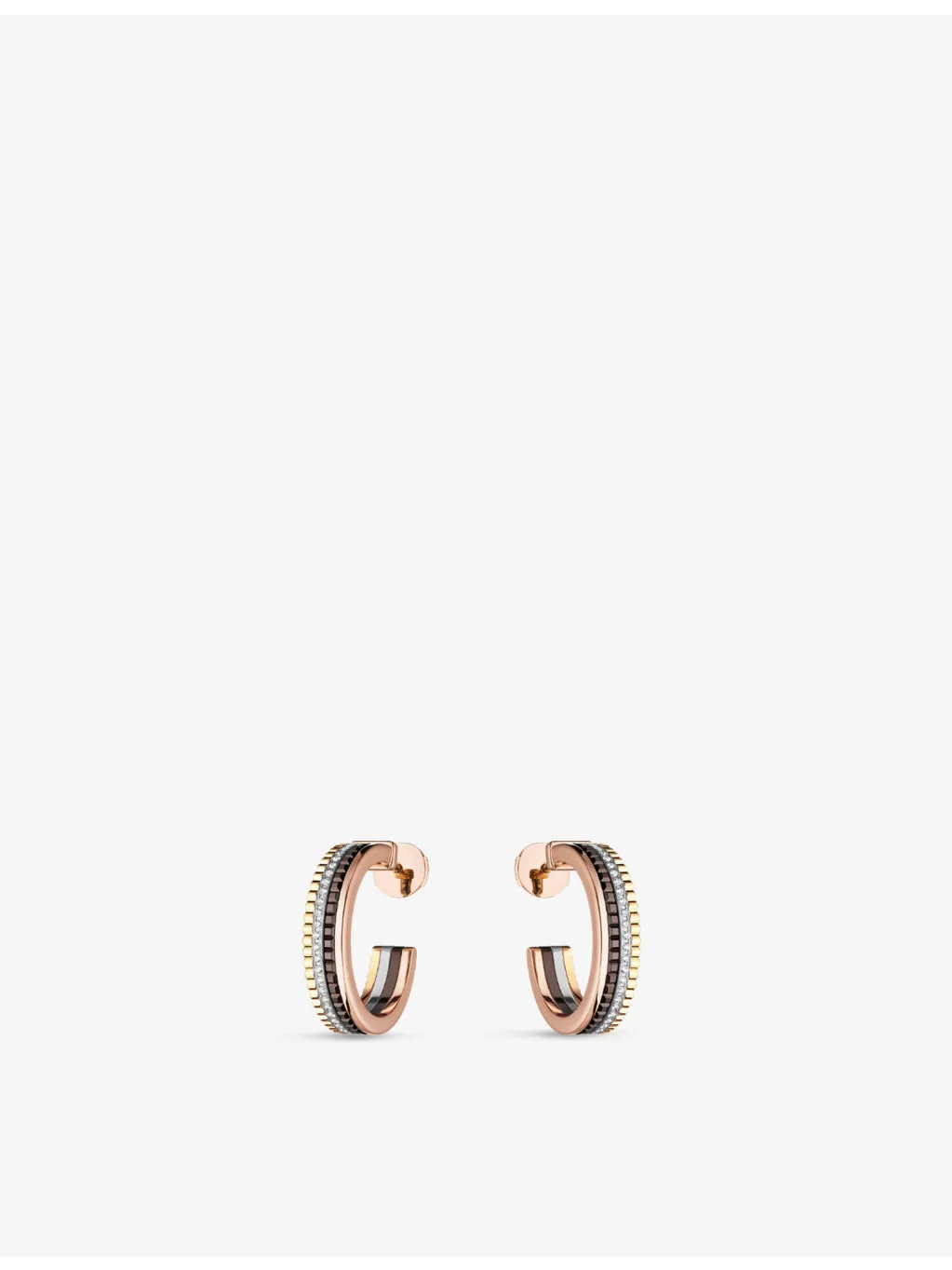 PRODUCT DETAILS - Boucheron Quatre Classique 18ct yellow-gold, white-gold, rose-gold and 0.28ct diamond hoop earrings - 100% 18ct yellow-gold, 100% white-gold, 100% rose-gold, 100% ceramic - 80 diamonds - Post-back and hinge fastening - 4-band design, polished finish, pave setting, sold as a pair - Carat weight: 0.28ct - Carat cut: brilliant cut - Carat quality: D, E, F, G, FL to VS2 - Dimensions: width 4.8mm, diameter 20mm - Made in Switzerland - Wipe with a clean, dry cloth - This product comes with a Boucheron certificate of authenticity Ref: R04147872