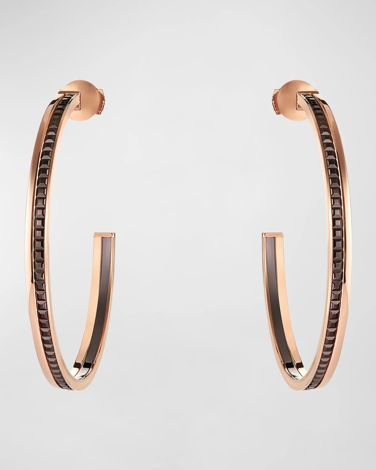 - Quatre Classique earrings from Boucheron - 18-karat rose gold with a polished finish - Textured PVD in brown - For pierced ears - Made in France - To clean or shine this piece, wipe with a clean, dry cloth. Online Inquiries: NMS21_PE0JT Store Inquiries: #4337863