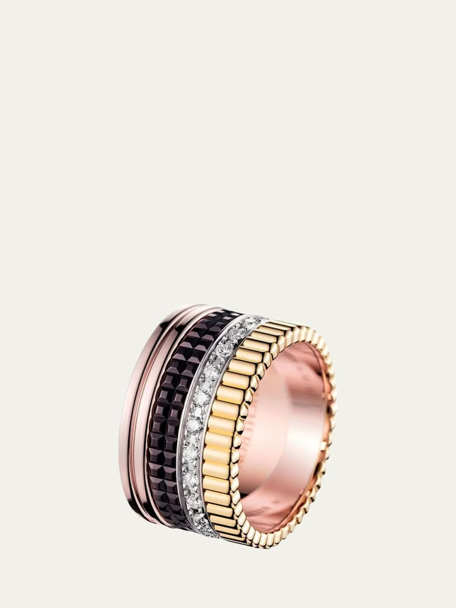 Quatre Large Ring in Tricolor Gold with Brown PVD and Diamonds