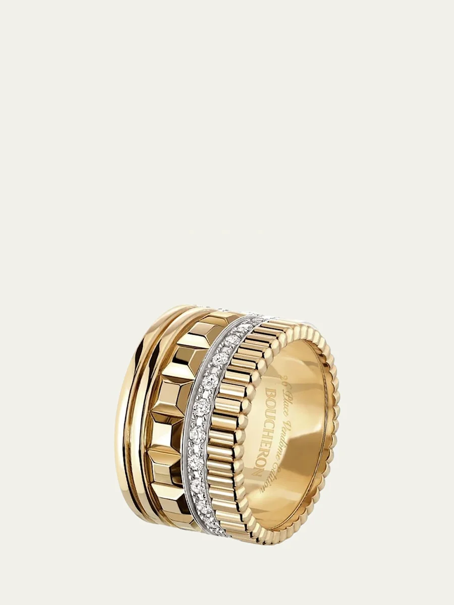Boucheron ring in 18-karat yellow gold. White diamonds set in 18-karat white gold. 0.49 total diamond carat weight. Made in Italy. Online Inquiries: BGS21_PCBCB| Store Inquiries: #4109856