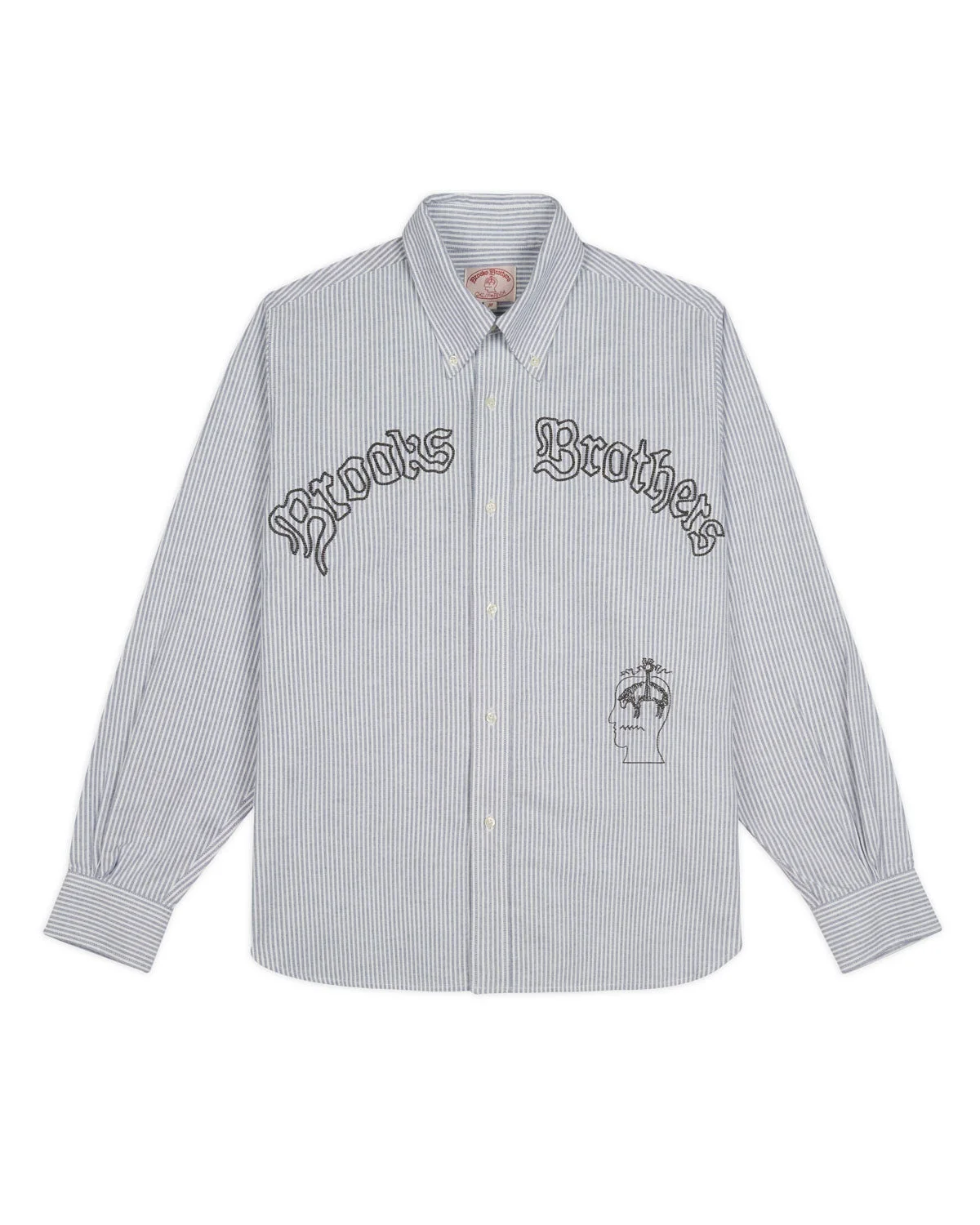 DETAILS Our striped oxford button up with Brooks Brothers. Features the signature Brooks Brothers collar and cuffs, and chainstitch embroidery on the front. Fabric sourced from Japan. Material: 100% Cotton Color: Blue BROOKS BROTHERS CALIFORNIA is our take on the idea that this historical brand was not just about suits and shirts, but about the American dream of innovation and creativity. BROOKS BROTHERS CALIFORNIA is not just a repro of Ivy Style, but an attempt to break tradition, adding personal identity to the classic American style.