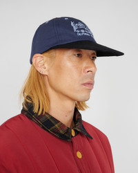 DETAILS Our 6-panel strapback hat with contrasting duck bill brim. California designs embroidery on the front. Material: 100% Cotton Color: Navy / Black