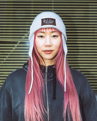 DETAILS Our cuffed cotton knit beanie with built-in ear flaps and woven patch detail on the front. Made in Peru. Material: 100% Cotton Color: Natural