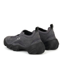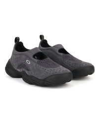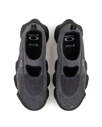 DETAILS This item is in US Men's sizing. Infused with support and comfort, the Oakley Factory Team Flesh Sandal first emerged as the ultimate hybrid shoe silhouette. Running lines and wavy curves, the upper offers a unique outlook on what a slip-on sandal could be. Its open-face sock-like upper is made of mesh and neoprene to provide breathability and ease so you can explore the warmest of desert or simply roam around the urban jungle. Resting under your foot, the chunky and undulated 3-point fit outsole optimize comfort and removes unwanted distractions, allowing for hyper focus on the journey. With a monochromatic asphalt upper and black outsole, this Oakley Factory Team Flesh Sandal is your go-to choice for navigating the streets with flair. Material: 17% Leather / 83% Polyester Color: Asphalt