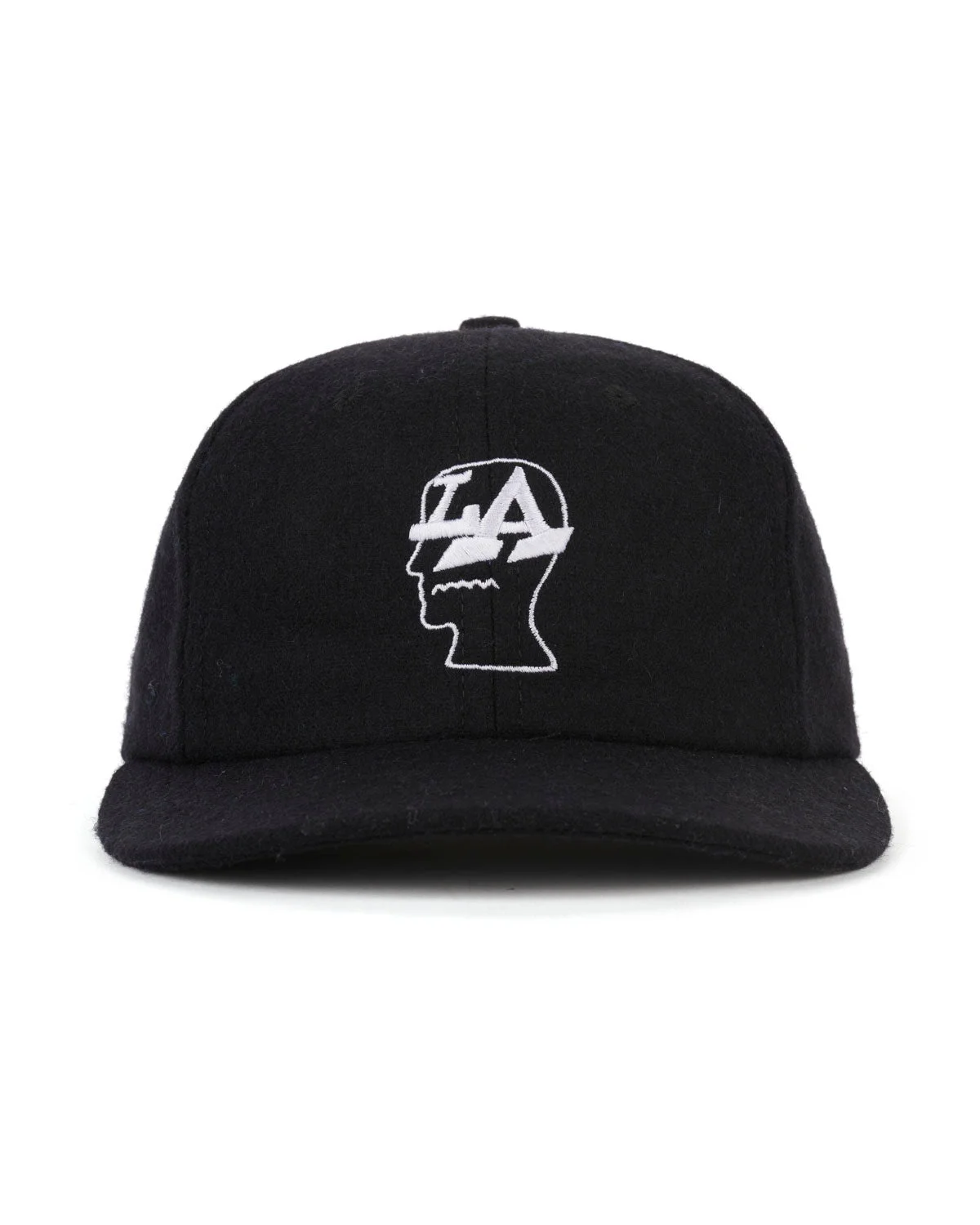 Wool Flannel LA Logo Head 6 Panel Hat - Black