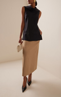 PRODUCT DETAILS - Straight shape, metal zip detail, midi hem - Concealed zip fastening - Unlined - Composition: 100% Cotton - Color: Khaki - Dry clean only - Pre-Fall '25