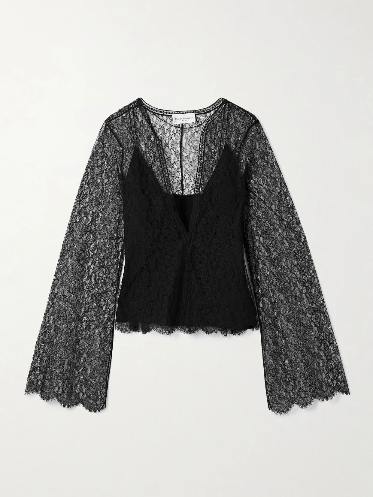 Brandon Maxwell's collections exude sultry glamour, which is why celebrities like Jennifer Lawrence and Karlie Kloss are drawn to his designs. 'The Eloise' top has a crepe camisole with a plunging neckline and a romantic Chantilly lace overlay. The bell sleeves add instant drama.