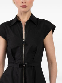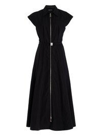 zip-up belted dress Highlights - Black - Front zip fastening - Belted waist - Short sleeves - A-line Made in United States Composition Cotton 100% Washing instructions Read Manufacturer Guidelines