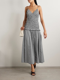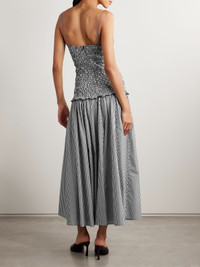 At first glance, Brandon Maxwell's 'The Josie' dress looks like two coordinating pieces styled together. It's made from striped cotton and has a shirred bodice with a ruffled hem and floaty skirt. Wear yours with sandals or ballet flats. Size & Fit - Fits true to size, take your normal size - Designed to be fitted at the bust and waist, loose at the hip - Mid-weight, stretchy fabric with non-stretchy skirt - Model is 177cm/ 5'10" and is wearing a US 2 Details & Care - Black and white cotton - Concealed hook and zip fastening at back - 100% cotton
